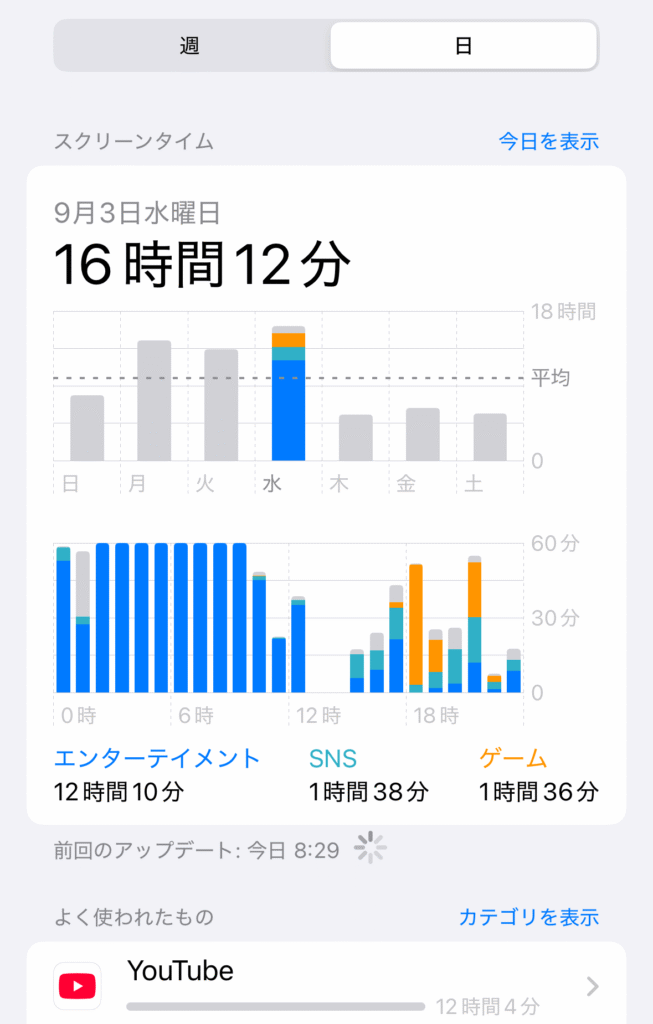 休日にはYouTubeのショートや普通の動画を延々と見続けていました・・・