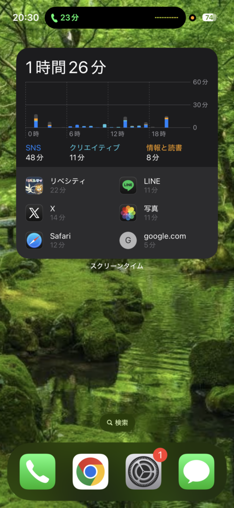 また同時にスマホのホーム画面にスクリーンタイムを配置してさらに制限時間を2時間にしました。